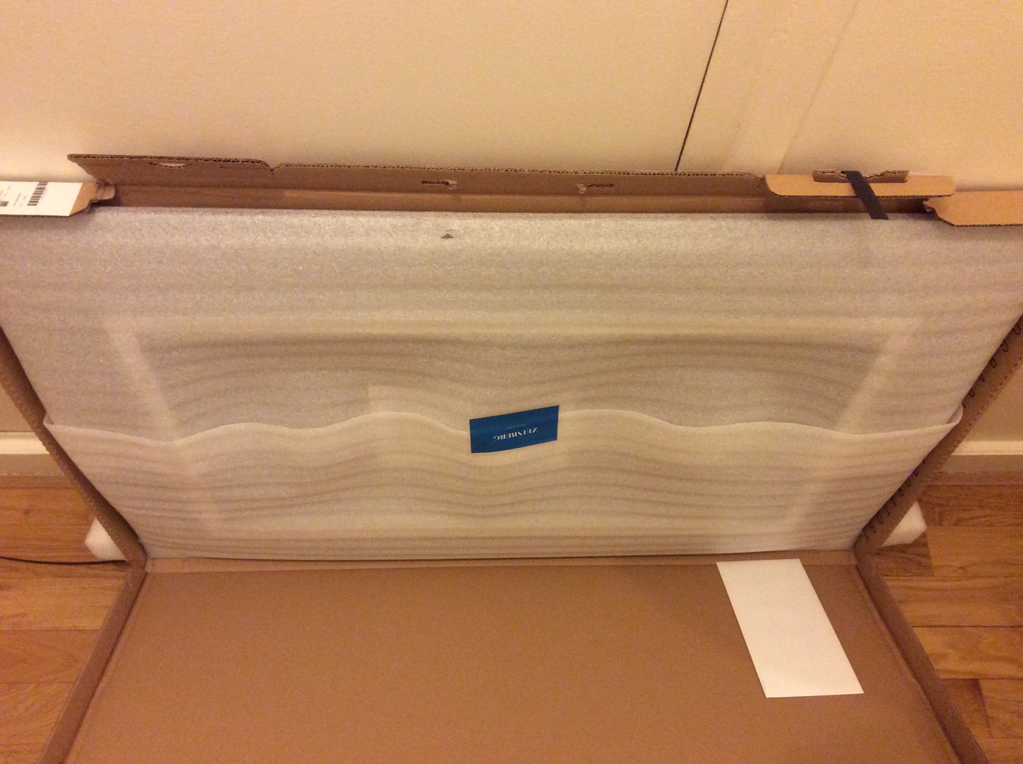 Le colis comprenant le tirage est bien protégé. Il comporte 2 couches de carton : un carton externe et un second carton à l’effigie de LabKorner, avec une poignée en plastique bien pratique pour le transporter. Des carrés de polystyrène protègent le second carton et à l’intérieur de celui-ci on y trouve le tableau enroulé par plusieurs couches de papier protecteur. Des capuchons protègent également les coins du cadre. La protection semble très fiable et sécurisée.