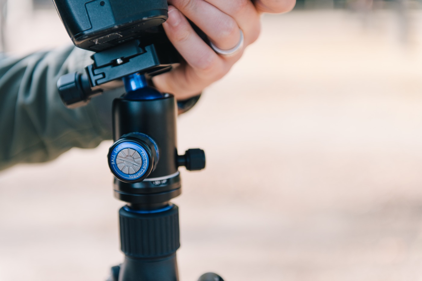 Avant tout, la rotule utilise le système de plateau Arca Swiss, une solution non propriétaire des marques de trépied, offrant beaucoup plus de polyvalence que les systèmes propres Manfrotto, Vanguard, etc. Le plateau est doté d’une vis avec boucle, facilitant grandement le serrage sur l’appareil.