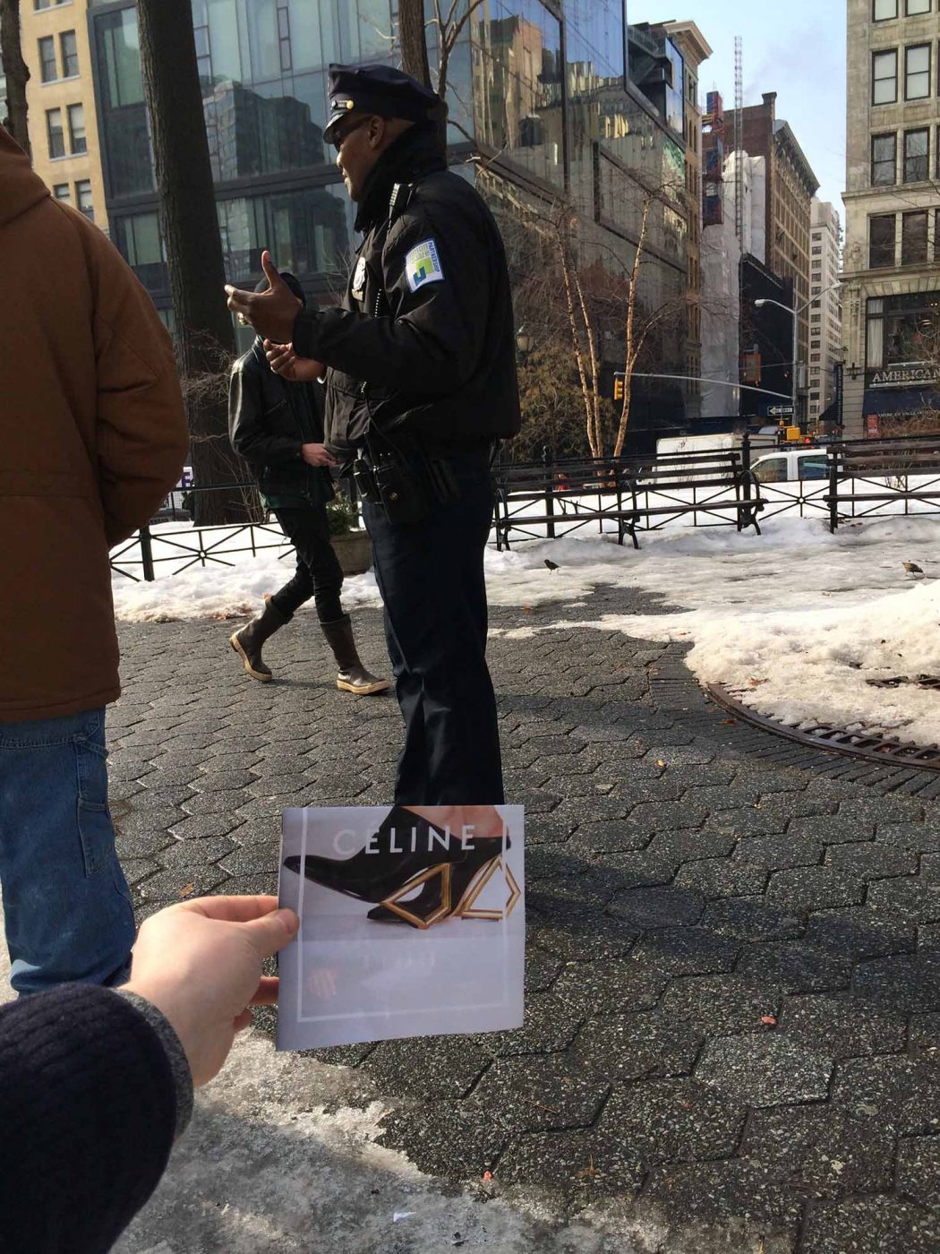 Ici, Kalen Hollomon tourne plutôt en ridicule la réalité en appliquant une couche comique et parfois loufoque, comme cet homme au pantalon baissé dans une foule ou ce policier aux chaussures de femme Celine.