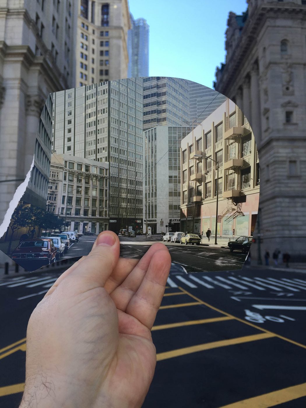 Cette technique, qui consiste à superposer des images d’archives devant des paysages actuels, est de plus en plus utilisée, notamment en histoire pour montrer le changement entre le passé et le présent.