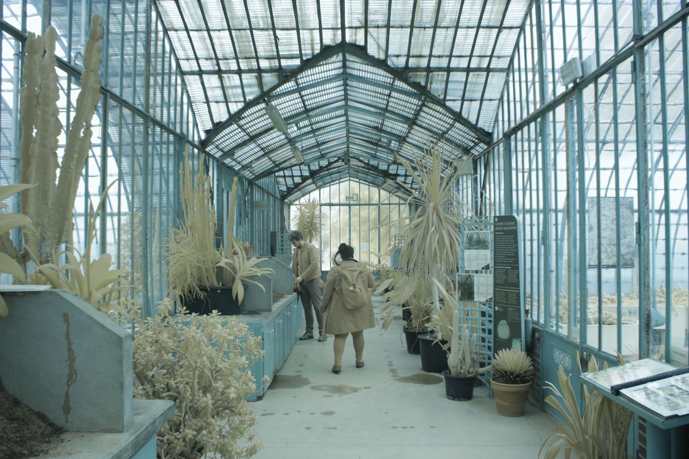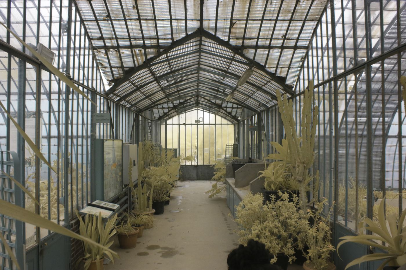 Deux types d’ateliers d’initiation sont proposés par Photographie Infrarouge : une formule collective et une formule individuelle. Toutes deux sont accessibles au plus grand nombre : les organisateurs apportent connaissances et matériels. Notre rendez-vous était initialement fixé sous le pont Bir-Hakeim, face à la tour Eiffel ; les conditions météo défavorables nous ont amené à nous reporter vers les Serres d’Auteuil, dans le 16e arrondissement.