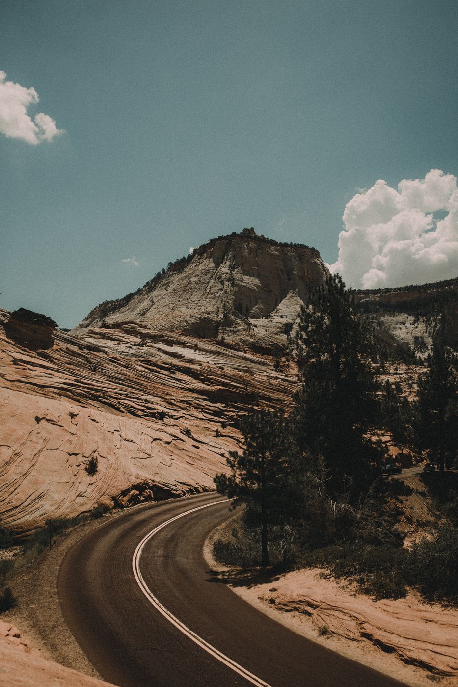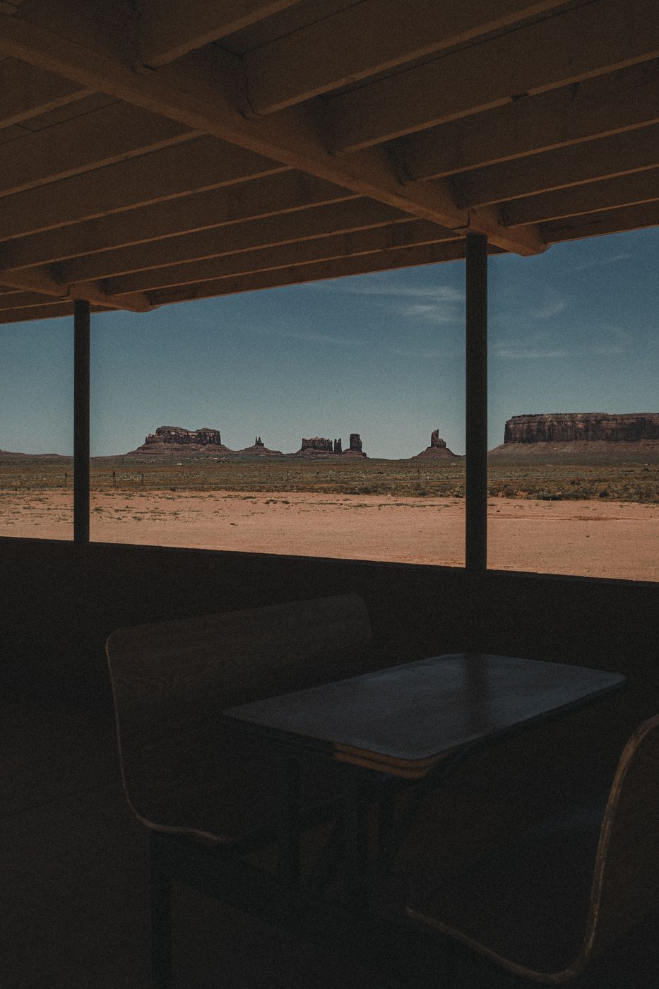 L’occasion de découvrir des paysages désertiques parfois montagneux, des grands espaces qui se déploient à l’infini, marqués ici et là par des carcasses rouillées de voitures abandonnés et des diners ordinaires. Des images parfois sombres, aux teintes tirant vers le bleu et l’ocre, qui offrent un cadre singulier à cette Amérique loin des clichés aux couleurs saturées.
