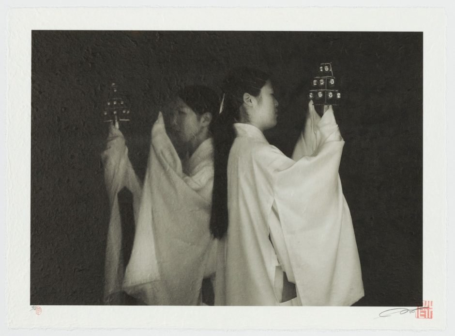 Au Musée Cernuschi, c’est un sujet plus spirituel qu’il nous propose en présentant sa série Le Sanctuaire des Divinités (Kami no miya). À partir du début des années 2000, Masuura Yukihito s’intéresse à la culture traditionnelle et religieuse de son pays d’origine. Il obtient le privilège d’assister à plusieurs cérémonies sacrées au sein de 2 sanctuaires Shintō : un temps fort nommé sengu.