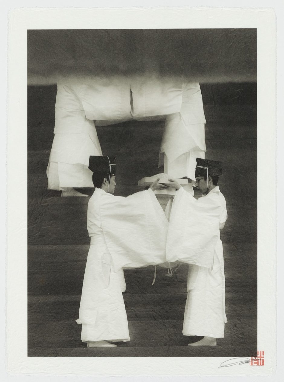 La rareté de ces cérémonies et leur caractère sacré donnent aux photographies de la série réalisée à l’occasion du 62e sengu une aura toute particulière qui transcende le temps. Offrandes, danses impériales, rituels de purification et processions, mais aussi majesté des constructions shintoïstes et du savoir-faire artisanal se dévoilent sur les images de Masuura Yukihito.