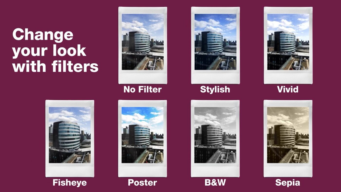 L’instax mini LiPlay+ repose sur un capteur CMOS 1/5″ d’environ 5 mégapixels, couplé à un objectif équivalent 28 mm f/2 pour le module principal. Une seconde caméra frontale (toujours avec un capteur de 5 Mpx) est dédiée aux selfies, on note qu’elle n’est cependant pas plus grand-angle avec une focale aussi équivalente à 28 mm f/2,2 – il faudra bien tendre le bras.