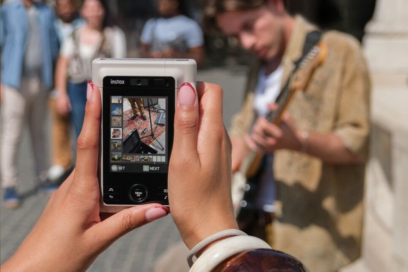 L’appareil peut également enregistrer un court extrait sonore associé à une photo. Le son est lié au tirage par un QR code imprimé sur l’image, consultable via smartphone. Fujifilm complète cette approche par la fonction instax Sound Album, permettant de créer des séquences mêlant photos et sons. La durée de captation n’excède pas 3 secondes, contre 10 auparavant.