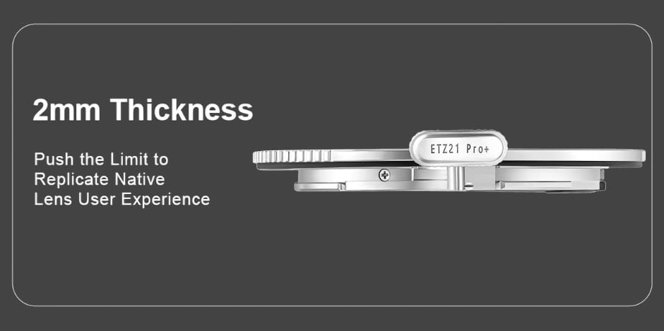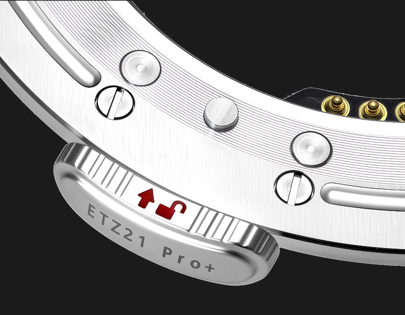 Sur le papier, la bague ETZ21 Pro+ reprend les bases du modèle précédent mais y ajoute plusieurs optimisations matérielles et logicielles. Elle est ainsi toujours très fine, avec seulement 2 mm d’épaisseur. En la montant sur un boîtier, on a l’impression de remplacer tout simplement la monture de ce dernier.