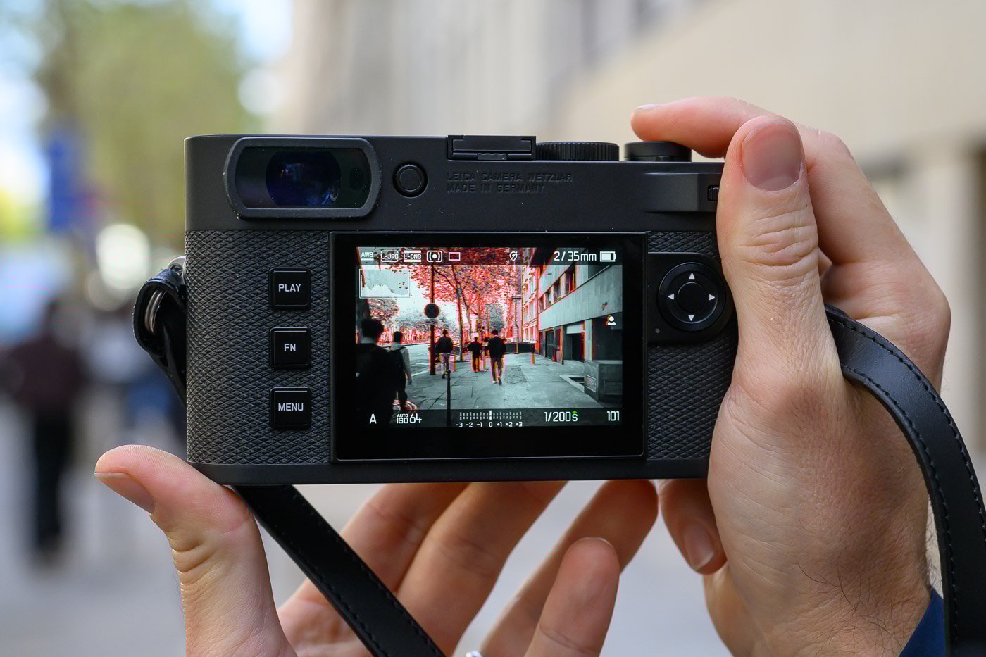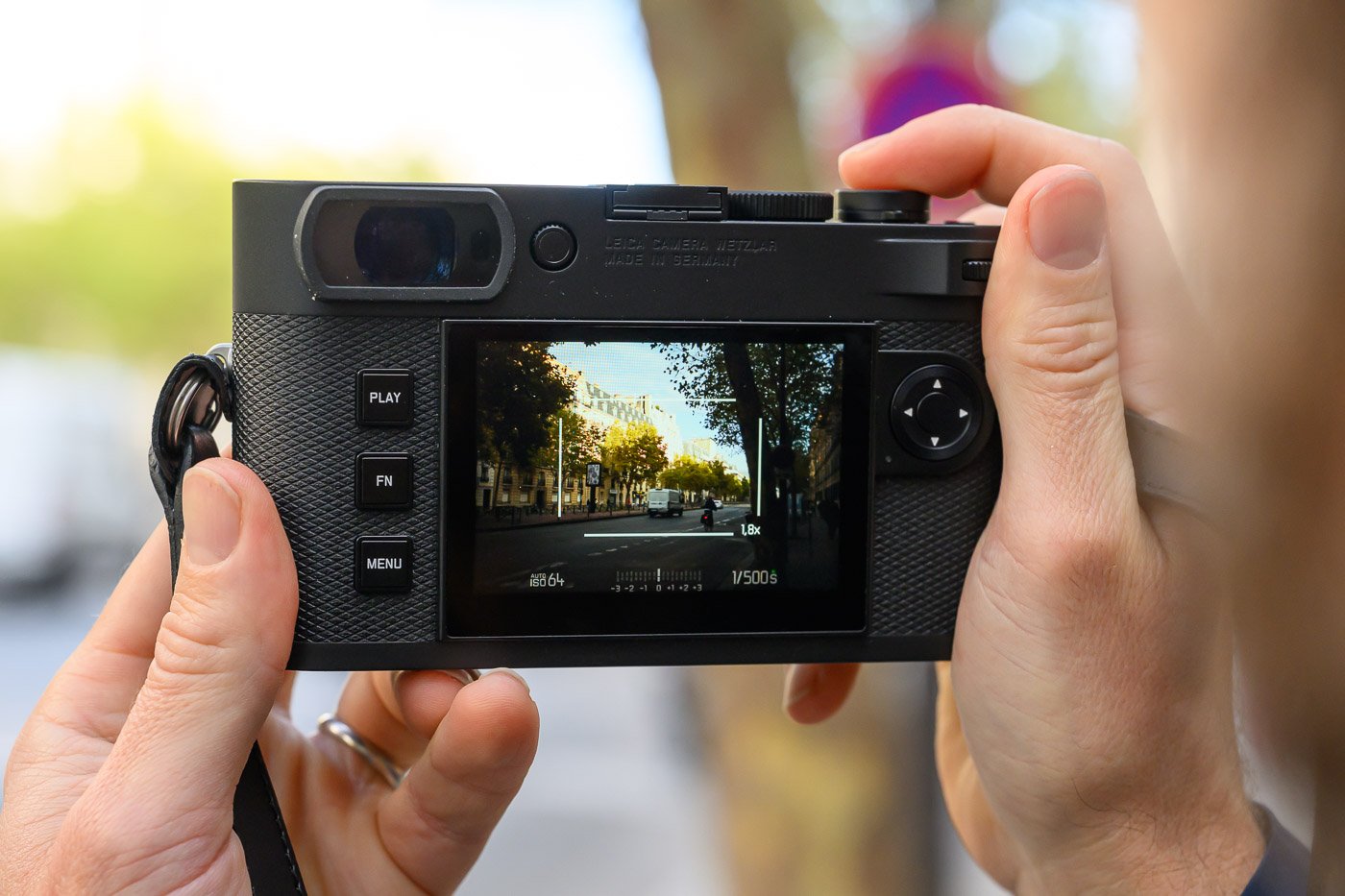 Rappelons ici aux amateurs de la visée télémétrique que le viseur électronique permet d’avoir le rendu final de la photo (ainsi que le Mode de pellicule choisi, par exemple pour composer en noir et blanc Leica). Cette nouveauté peut paraître anecdotique pour les utilisateurs de boîtiers hybrides voire même de Leica Q, mais sur le système Leica M, c’est une petite révolution.