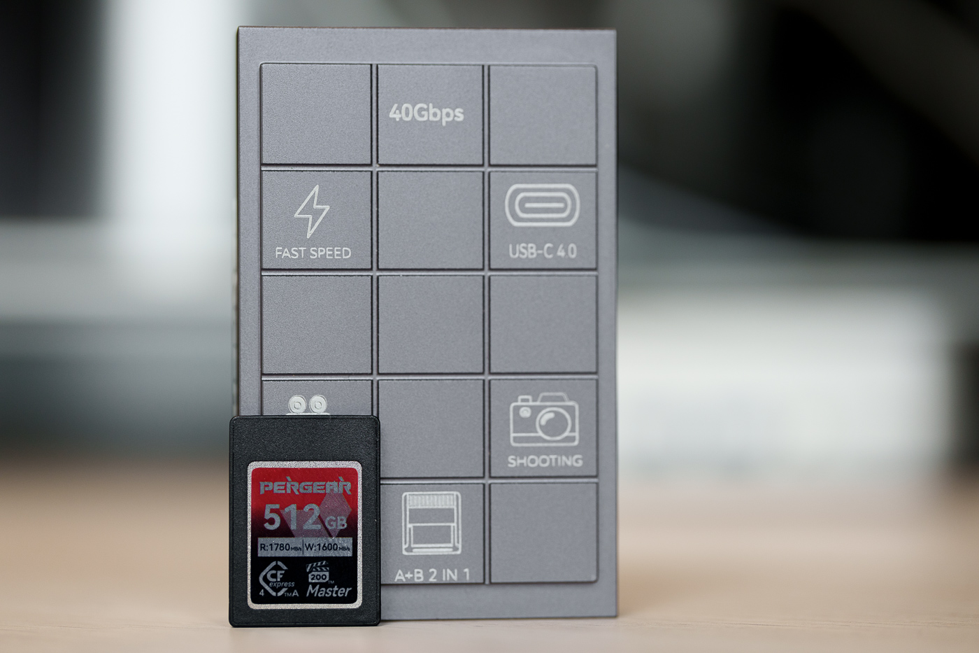 Pour réaliser notre test, nous avons utilisé le nouveau lecteur de cartes Pergear qui permet de lire à la fois des cartes CFexpress Type A / B et est compatible USB-C 4.0. Il est proposé à 69 €, et semble, d’après nos tests, permettre de bénéficier des débits maximums proposés par la carte.