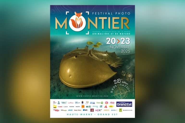 Chaque année, Montier soigne son identité visuelle. Pour cette 28e édition, l’affiche officielle s’appuie sur un cliché de Laurent Ballesta représentant une limule, animal marin préhistorique présent sur Terre depuis près de 450 millions d’années.