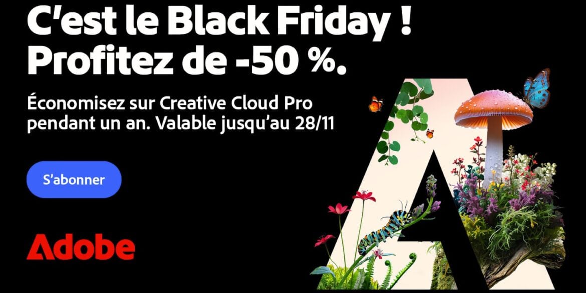 À l’occasion du Black Friday 2025, Adobe lance une offre à ne pas manquer : -50 % sur la formule Creative Cloud Pro pour la première année.
