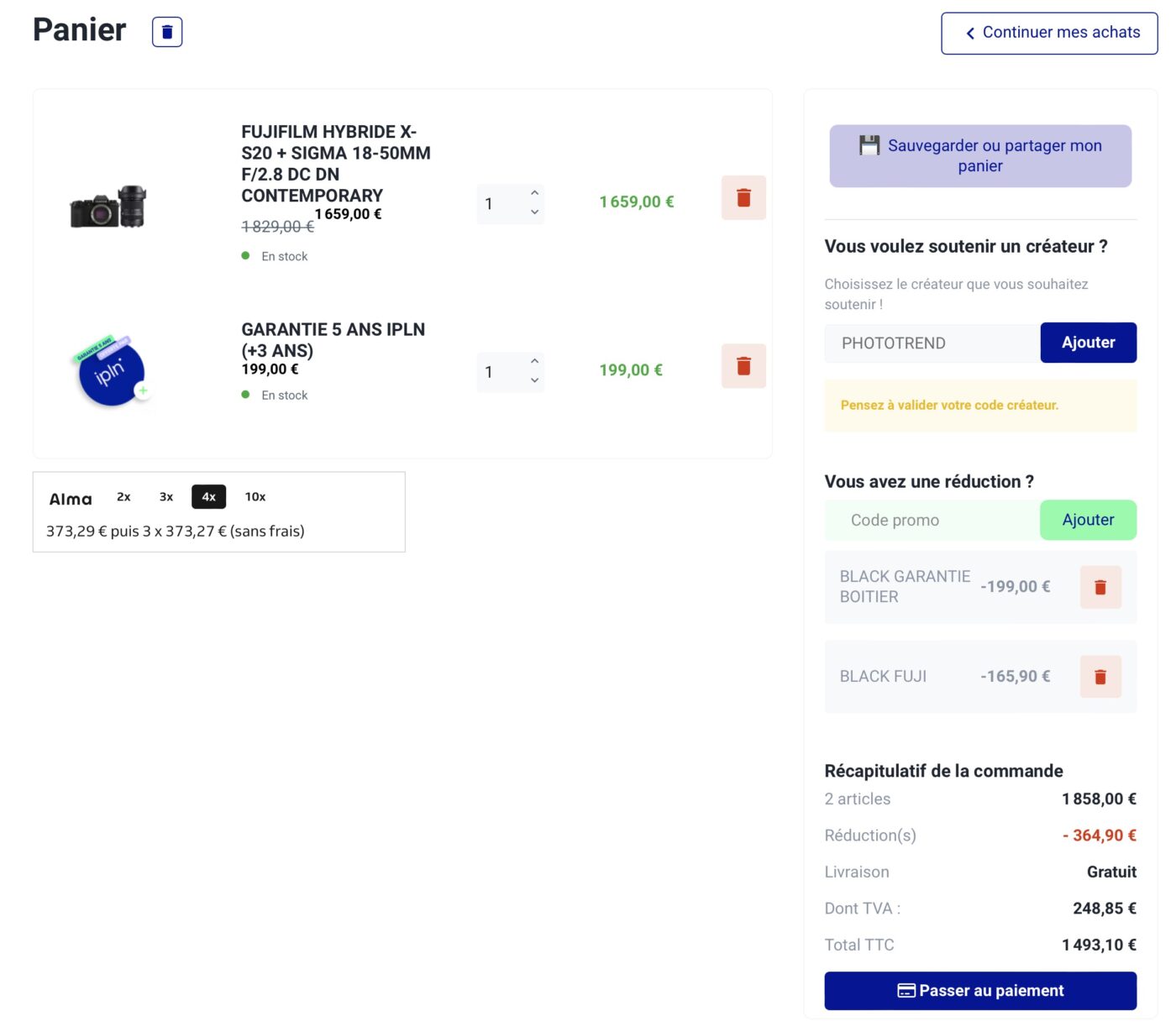 Toutes ces offres sont valable dès maintenant – et jusqu’au 1er décembre 2025. Pour en profiter, il vous suffit d’ajouter un boîtier et/ou un objectif dans votre panier : la remise supplémentaire de 10 % s’appliquera automatiquement.