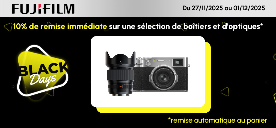Le Black Friday 2025 bat son plein. Chez certains revendeurs, les boîtiers et objectifs Fujifilm APS-C et moyen format profitent d’une remise de 10 %, cumulable avec les promotions et ODR en cours. À la clé : jusqu’à 1 240 € d’économie. Cette offre exceptionnelle est valable dès maintenant et jusqu’au 1er décembre 2025.