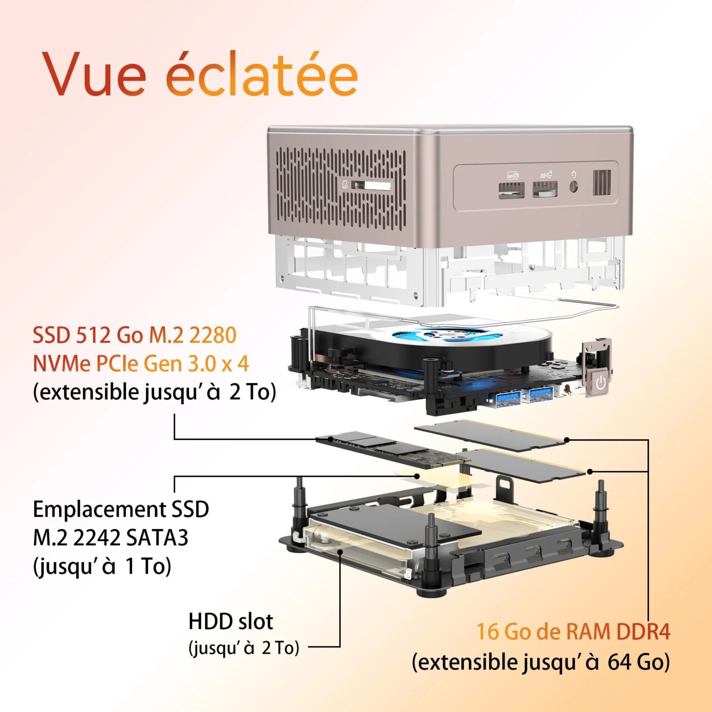 À cela s’ajoutent jusqu’à 64 Go de RAM, un SSD PCIe Gen 4 jusqu’à 2 To, un emplacement 2,5″ pour HDD/SSD, et une connectique ultra-complète (USB4, USB-A, double HDMI 2.0, LAN 2,5 Gb/s, Wi-Fi 6E) permettant l’affichage sur jusqu’à quatre écrans, 8 K ou multiples 4 K.