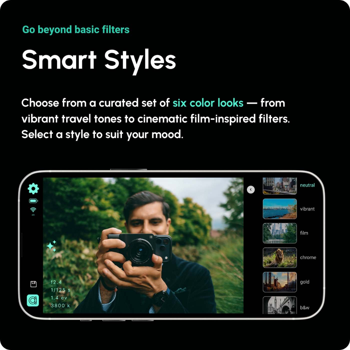 L’appareil dispose également de Smart Styles, avec six rendus colorimétriques prédéfinis (cinéma, vintage, noir et blanc, etc.) qui peuvent être personnalisés.