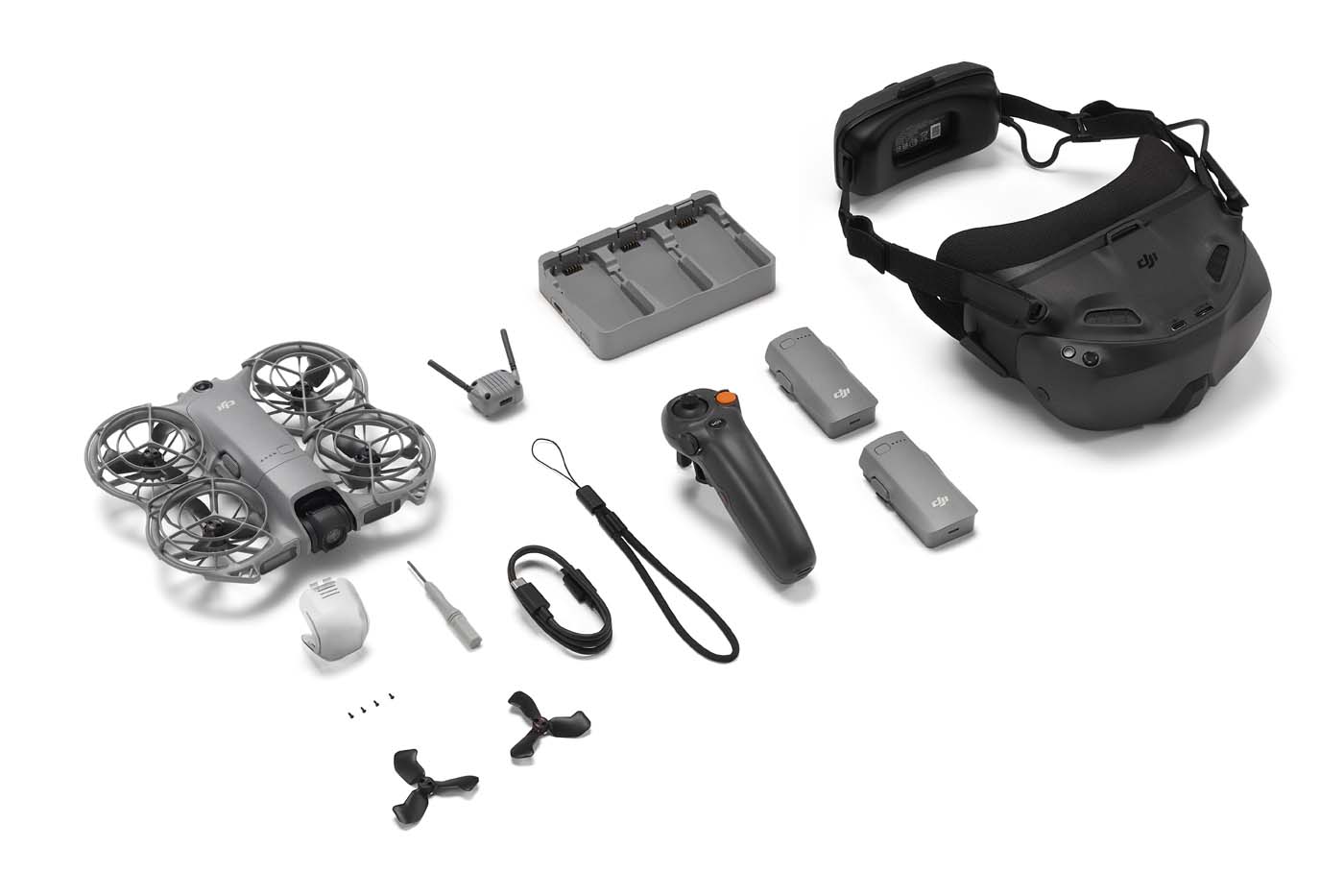 Enfin, DJI propose le kit Motion Fly More Combo au tarif de 579 €. Par rapport au kit Fly More, la radiocommande est remplacée par les DJI Goggles N3 et un RC Motion 3, pour une expérience de vol plus immersive.