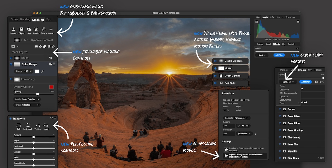 ON1 Photo RAW 2026 est certainement une mise à jour majeure du logiciel de retouche photo. Avec les nouveaux masques de retouche localisée par IA, l’éditeur américain comble son léger retard sur ses principaux concurrents, Lightroom Classic en tête.