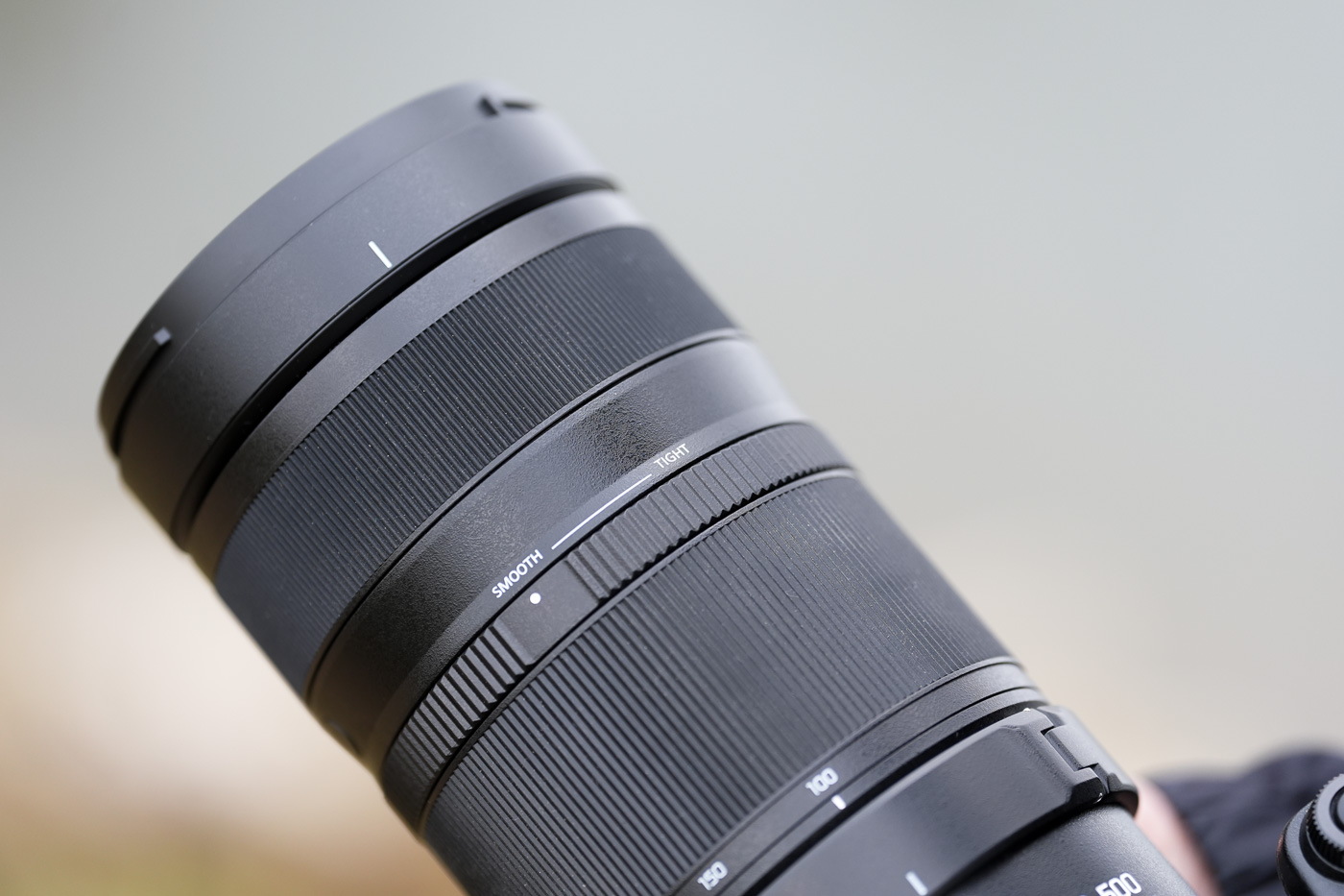 La bague de zoom est très large et sa course est plutôt longue. Il faut 1/4 de tour pour passer de 100 à 500 mm. Notez qu’un commutateur « Zoom Lock » permet de “bloquer” la focale minimale à 150 mm. Une étape indispensable afin de permettre le montage d’un téléconvertisseur, soit dit en passant.