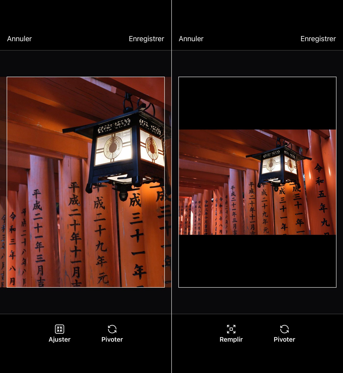 Dans l’ensemble, cela marche très bien, et on peut corriger au cas par cas depuis l’application mobile, voire d’ajouter des bandes si l’on ne veut pas de recadrage.
