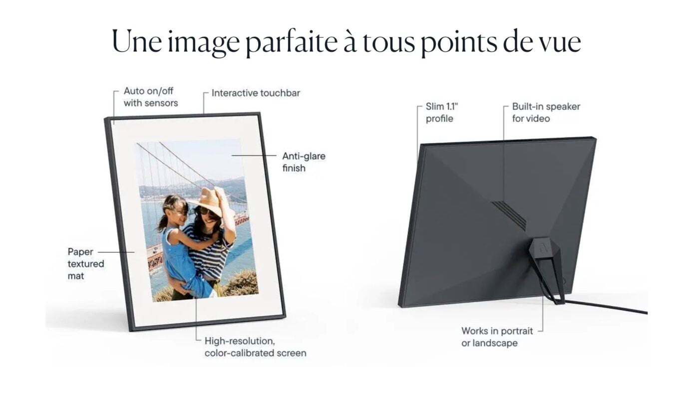Connecté au cloud Aura, il offre un stockage illimité gratuit, sans abonnement, et se contrôle via une application mobile intuitive. L’Aspen se présente comme l’un des cadres photo numériques les plus polyvalents du marché.