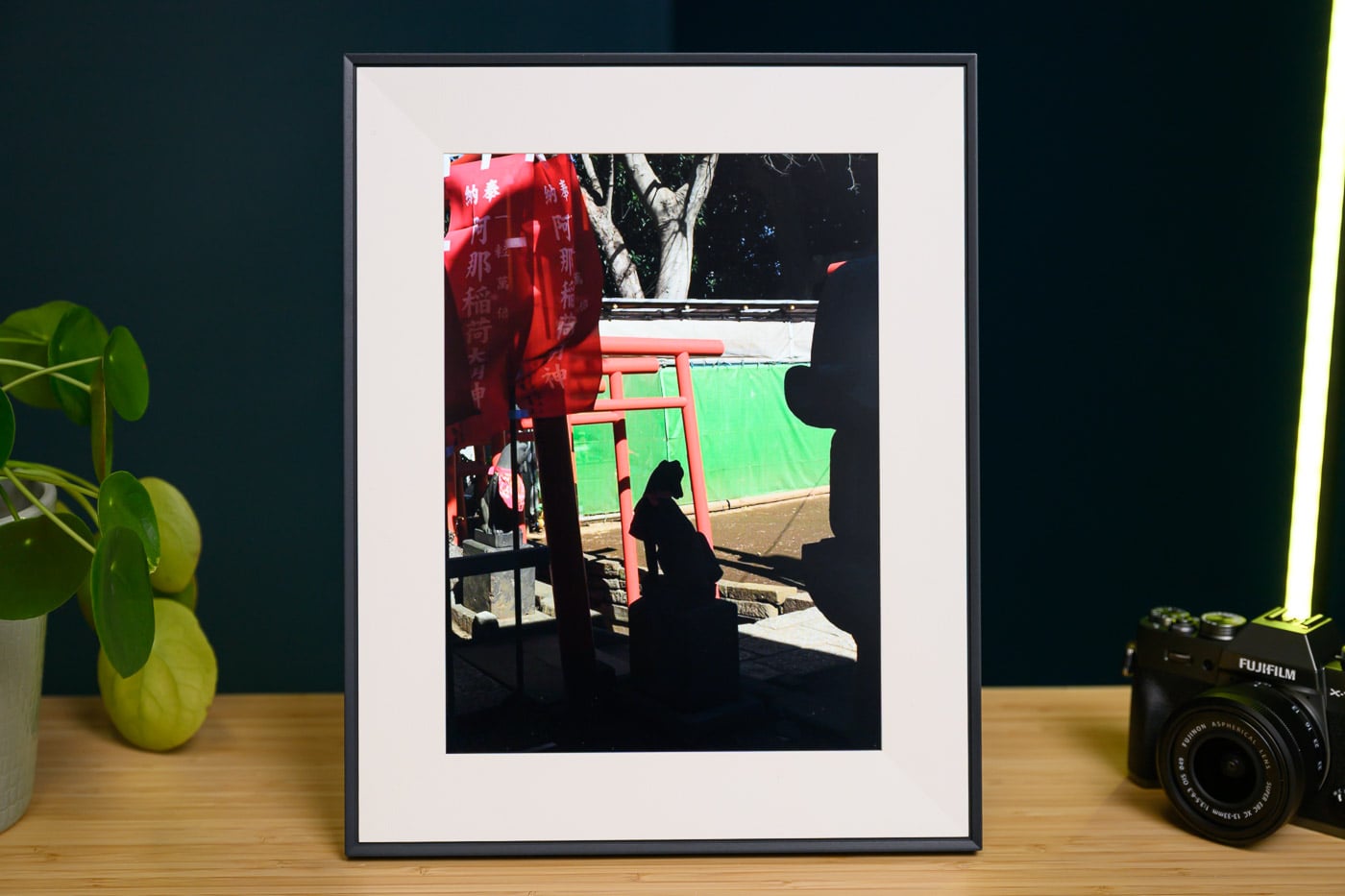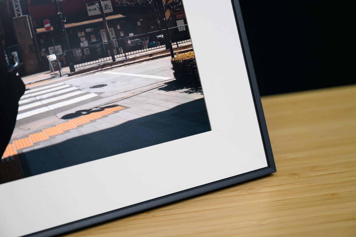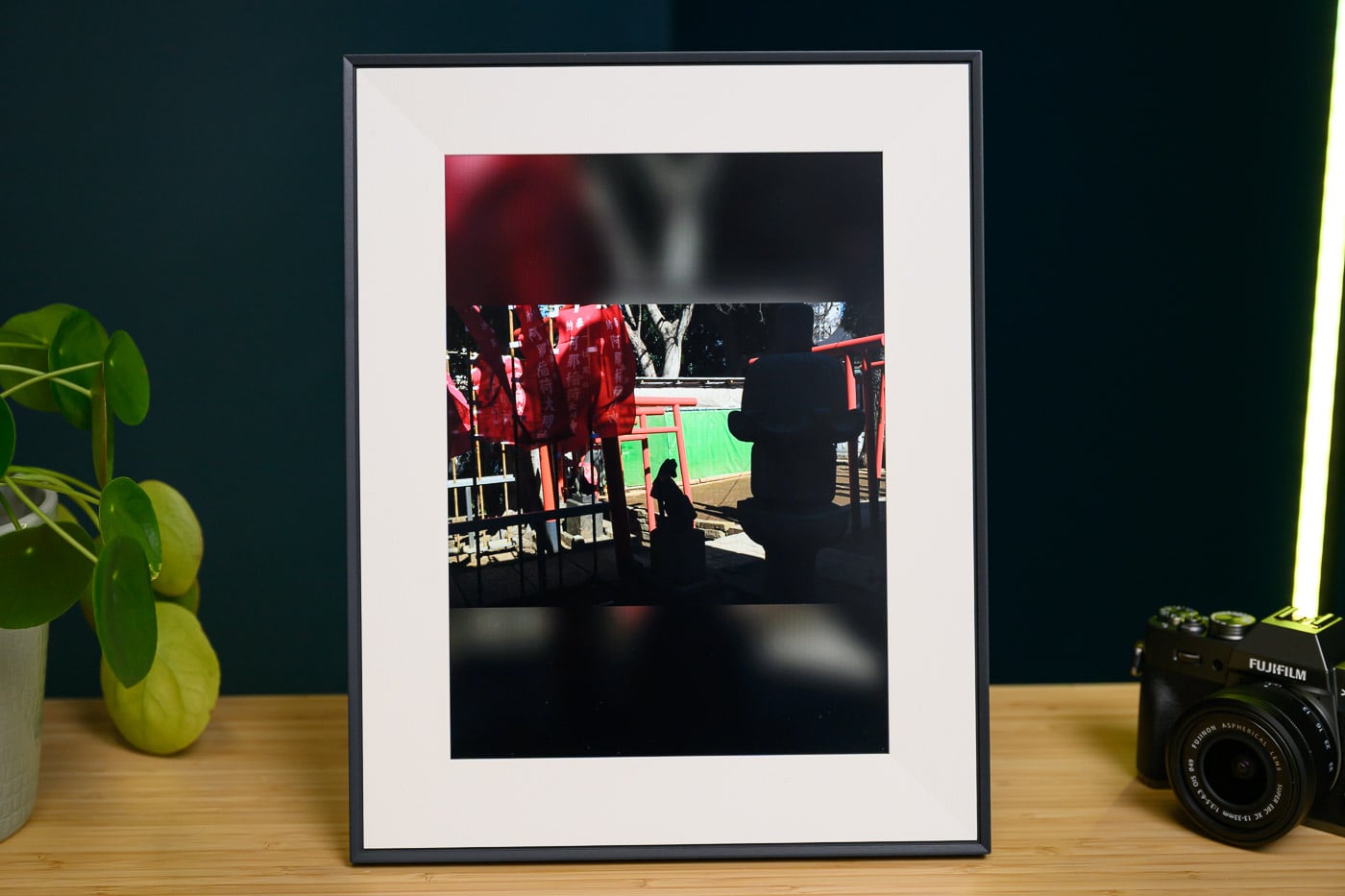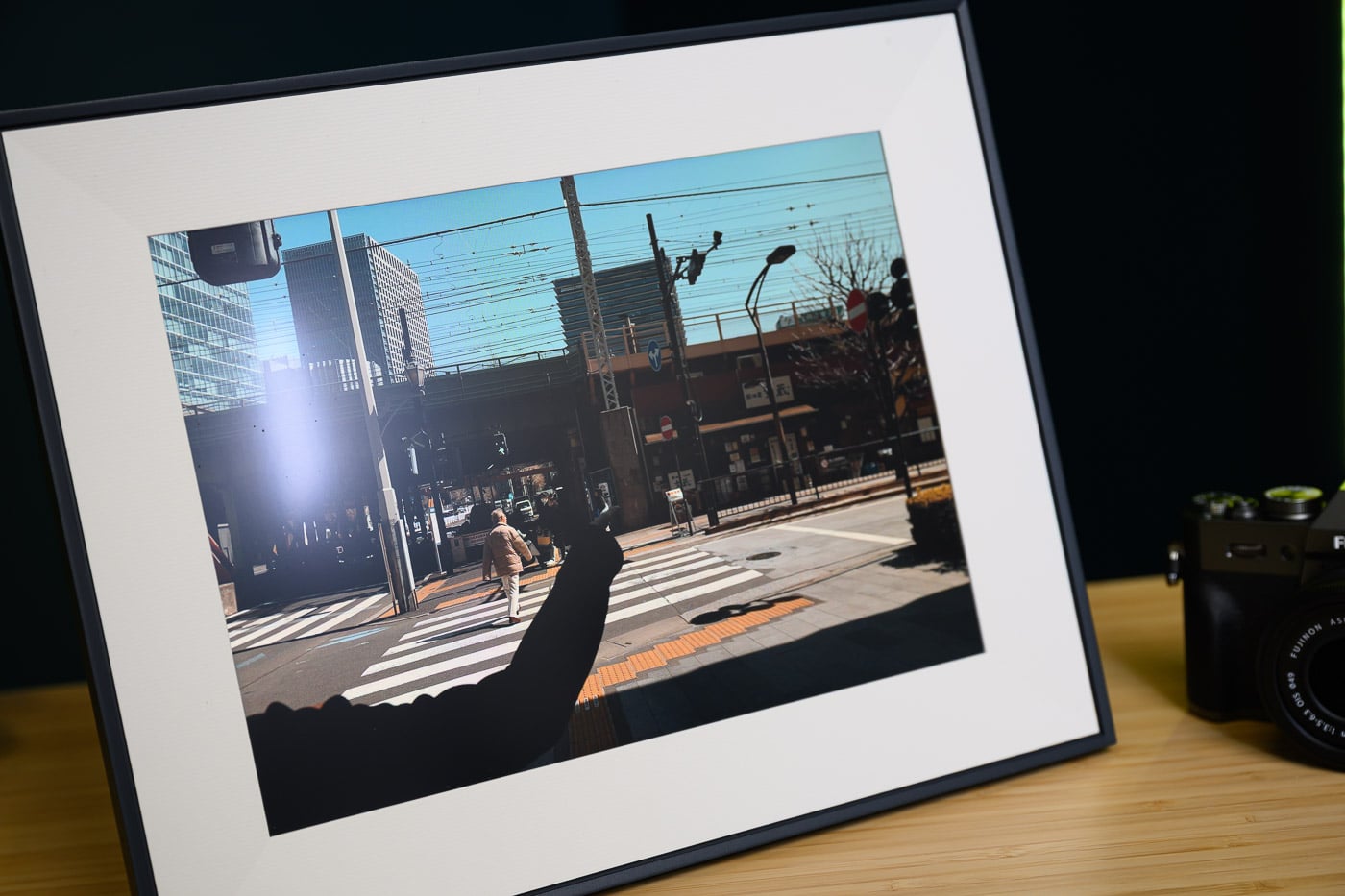 Le rendu mat de la dalle, associé à un traitement anti-reflet, permet de simuler l’effet d’un tirage photo mat, sans vitre de protection placée devant le cadre. Il est donc possible de placer le cadre dans n’importe quelle pièce.