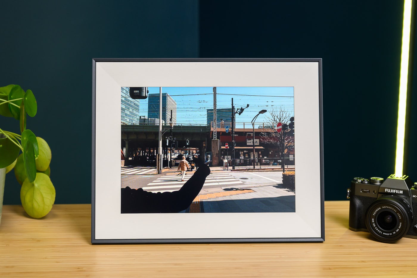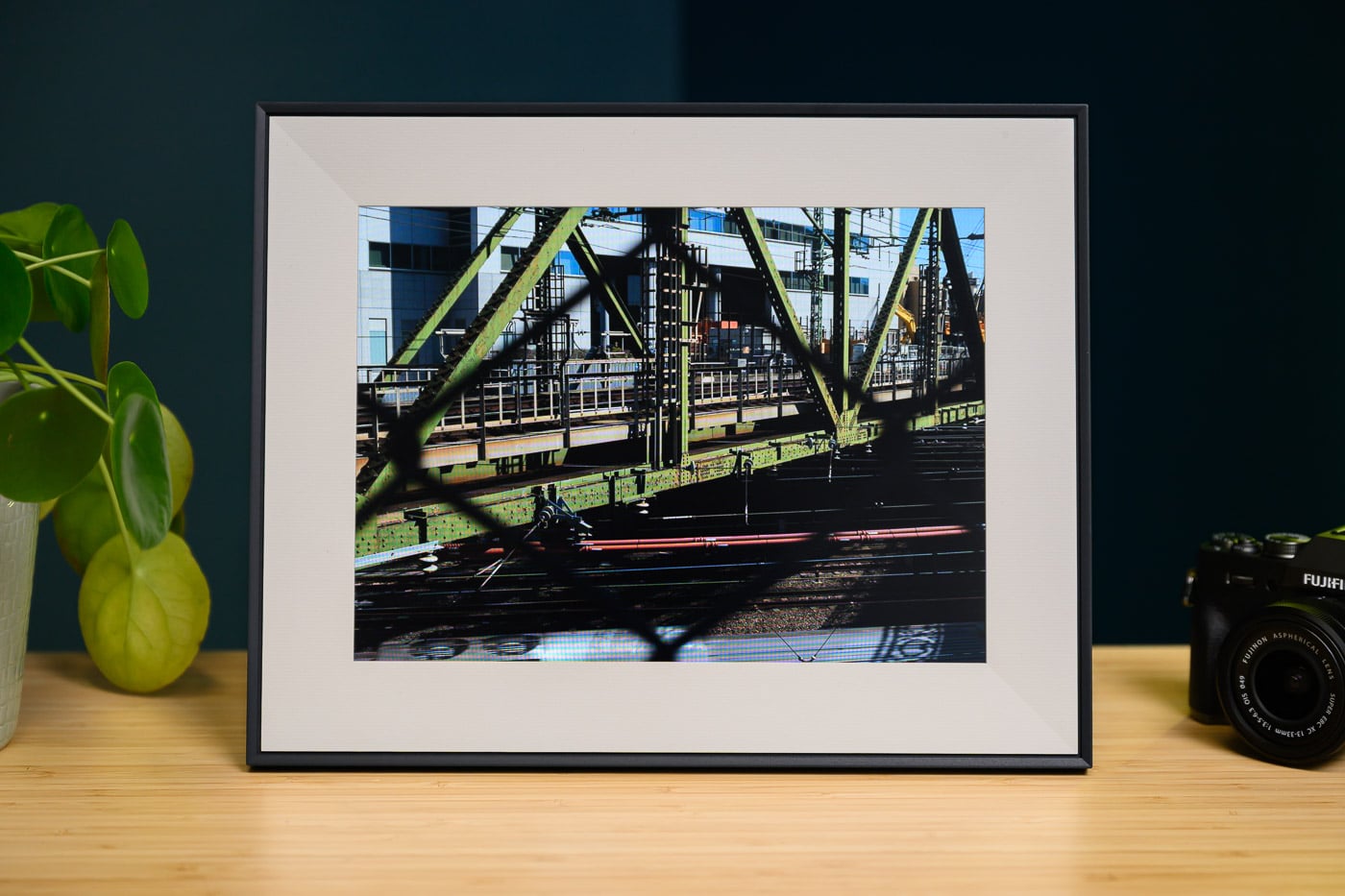 L’écran HD de 11,8 pouces (1600 x 1200 px) offre une résolution de 167 ppp, ce qui est inférieur au Mason Luxe (264 ppp), mais suffisant pour ne pas distinguer les pixels à distance lorsque le cadre est sur un meuble.