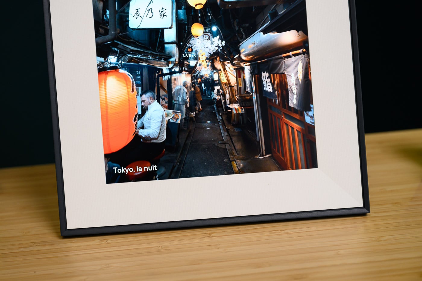 Au final, le cadre s’intègre très bien au quotidien et offre une sobriété visuelle qui fait oublier l’objet, au profil des images.