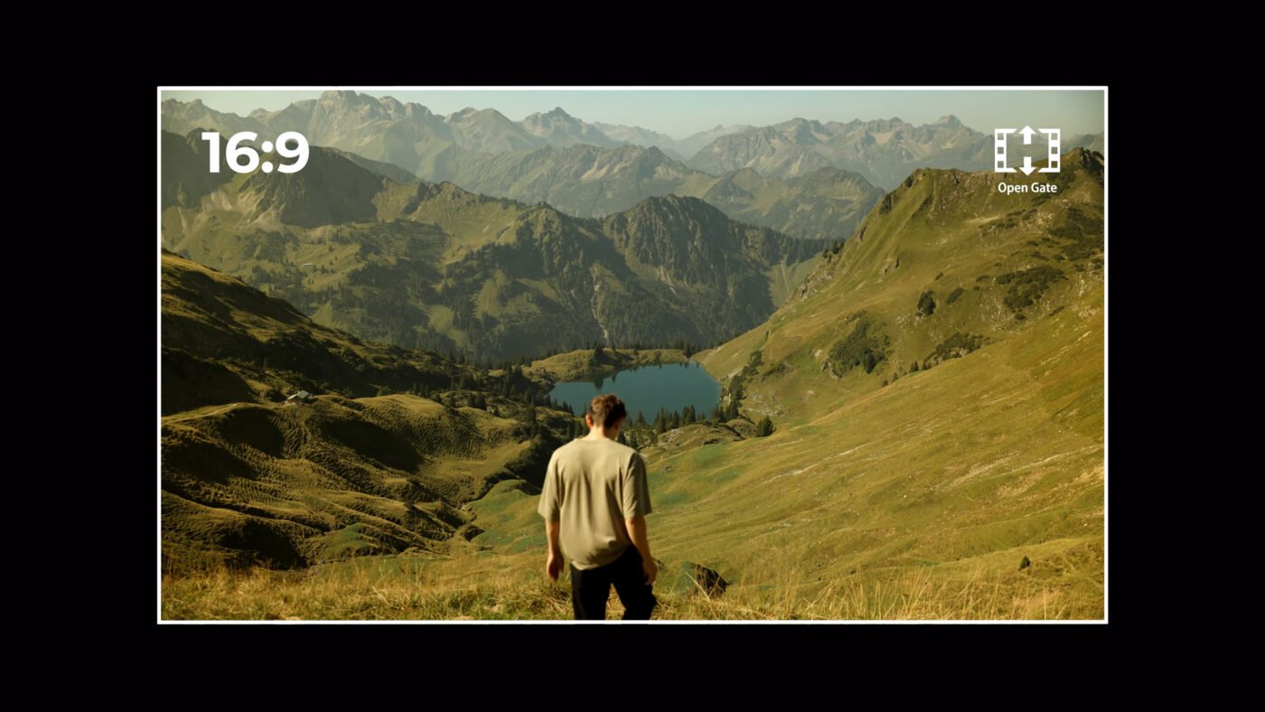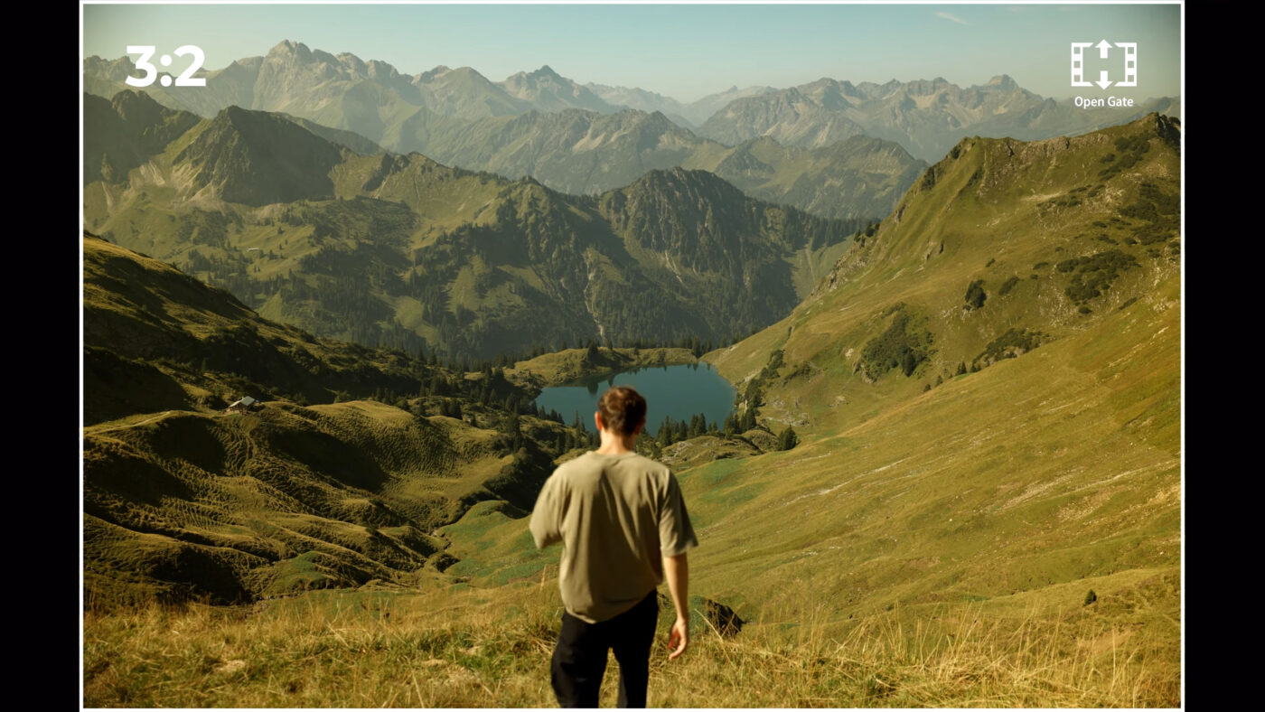 Concrètement, le boîtier est donc capable de filmer jusqu’en 7K 24 fps en RAW et en OpenGate – en exploitant la totalité des pixels du capteur. Les fichiers vidéo ainsi obtenus mesurent 6960 x 4640 pixels. De quoi permettre de cropper à l’envi en postproduction (16:9, 17:9, 9:16…). Des marqueurs d’aspect permettant d’ailleurs de mieux composer ses images.