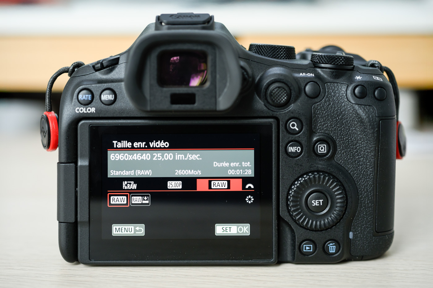 Canon a cependant apporté quelques petites nouveautés : la fonction de pré-déclenchement (pre-shoot) est maintenant assignable sur une touche personnalisée. Le bouton “rate” sert de raccourci aux options de colorimétrie en vidéo. Le toucher de certains boutons a été (très) subtilement adouci. Une petite tally lamp, bien pratique en vidéo (voir plus loin), prend place sur l’épaule gauche – comme sur l’EOS R5 Mark II, soit dit en passant.