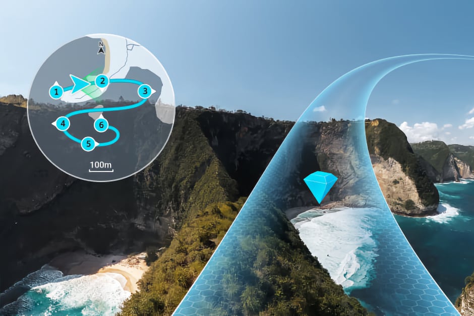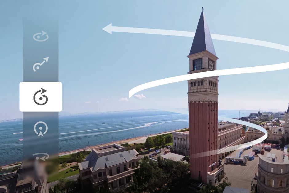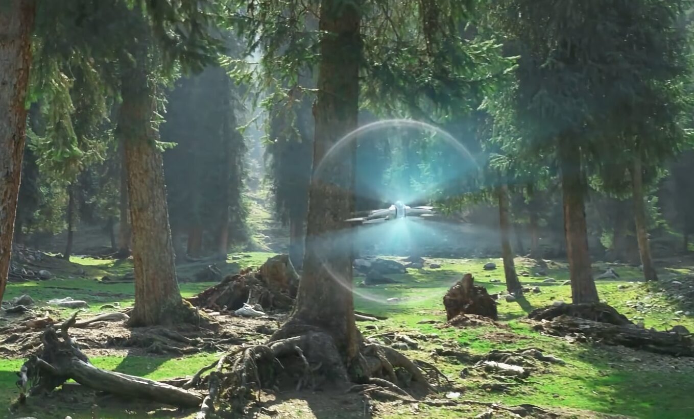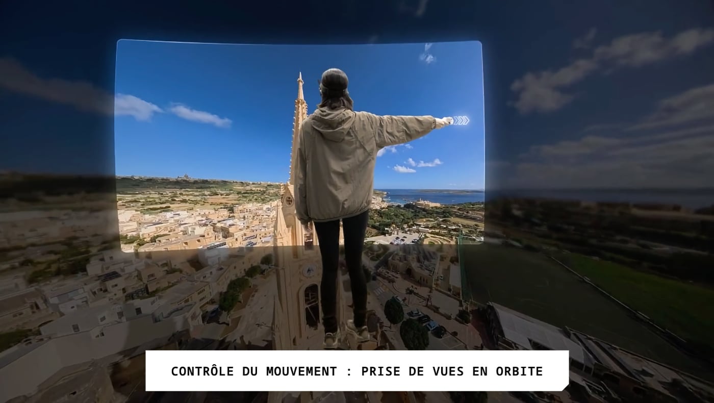 L’idée est simple : comme le drone enregistre son environnement à 360°, il devient possible d’ajouter en post-production des mouvements complexes (rotations, pirouettes, plongées, crash zooms…). Résultat : une liberté créative quasi illimitée pour les effets visuels et la composition – comme avec les caméras Insta360, d’ailleurs. Cerise sur le gâteau, les bras et les hélices du drone sont automatiquement supprimés de l’image.