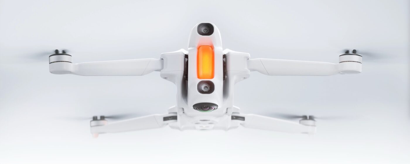 Plié, le drone mesure 14,13 × 9,62 × 8,14 cm. Déplié, il atteint 30,86 × 38,23 × 8,92 cm. Des dimensions finalement assez proches de celles du DJI Mini 5 Pro. Il dispose d’un mini train d’atterrissage, qui se replie automatiquement au décollage et se déploie à l’atterrissage. En outre, les objectifs du drone doivent être facilement remplaçables.