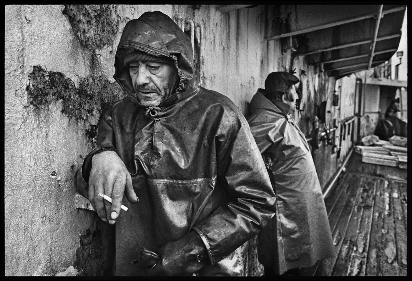 Le parcours puise dans le fonds Jean Gaumy de la Médiathèque du patrimoine et de la photographie pour explorer des thématiques variées. On y découvre ses premiers reportages dans les boucanes fécampoises, ces anciennes usines où les femmes fumaient le hareng dans une atmosphère de sel et de cendres. L’exposition présente également son travail sur la pêche traditionnelle au thon en Andalousie, technique ancestrale remontant à l’Antiquité romaine, qu’il a documentée en 1982.
