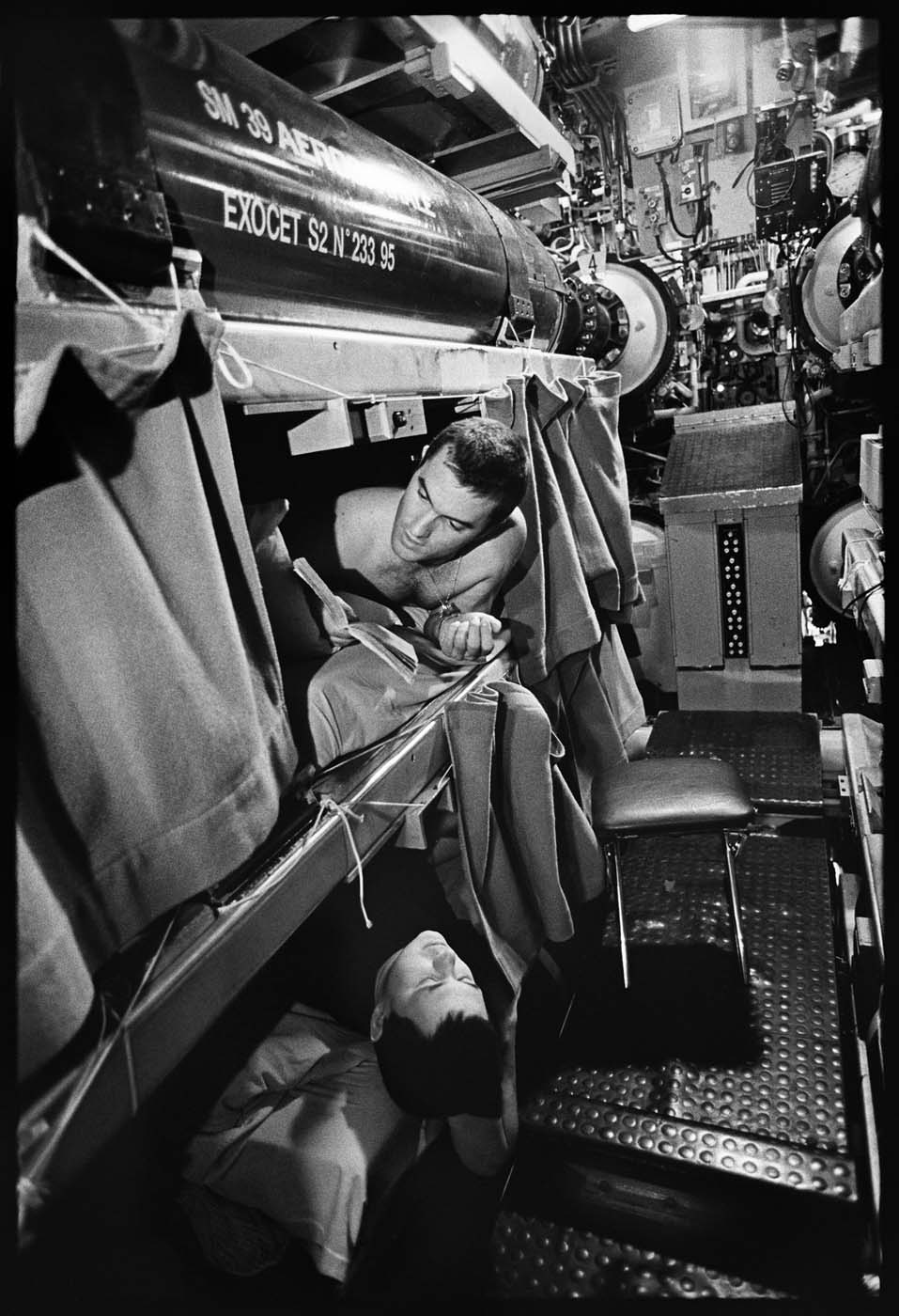 L’exposition dévoile son travail dans les sous-marins nucléaires d’attaque, un univers confiné où il a obtenu une autorisation exceptionnelle de séjourner plusieurs mois. Ses expéditions polaires entre 2008 et 2018 révèlent quant à elles une approche plus contemplative, questionnant les limites de la photographie face aux paysages de glace menacés par le réchauffement climatique.