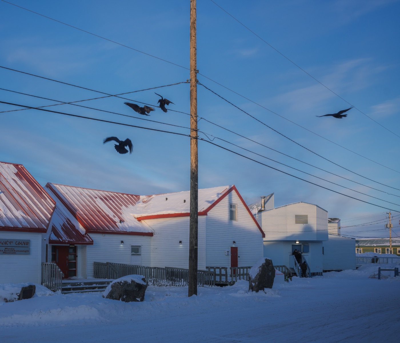 Pour documenter ce poison invisible, la photographe a fait le choix d’un récit incarné. Portraits au crépuscule, scènes de chasse sur la lisière de la banquise, moments du quotidien à Iqaluit ou dans la baie d’Aaulftasivia : ses images couleur glacier, loin d’être froides ou inanimées, racontent les existences autant que les paysages.