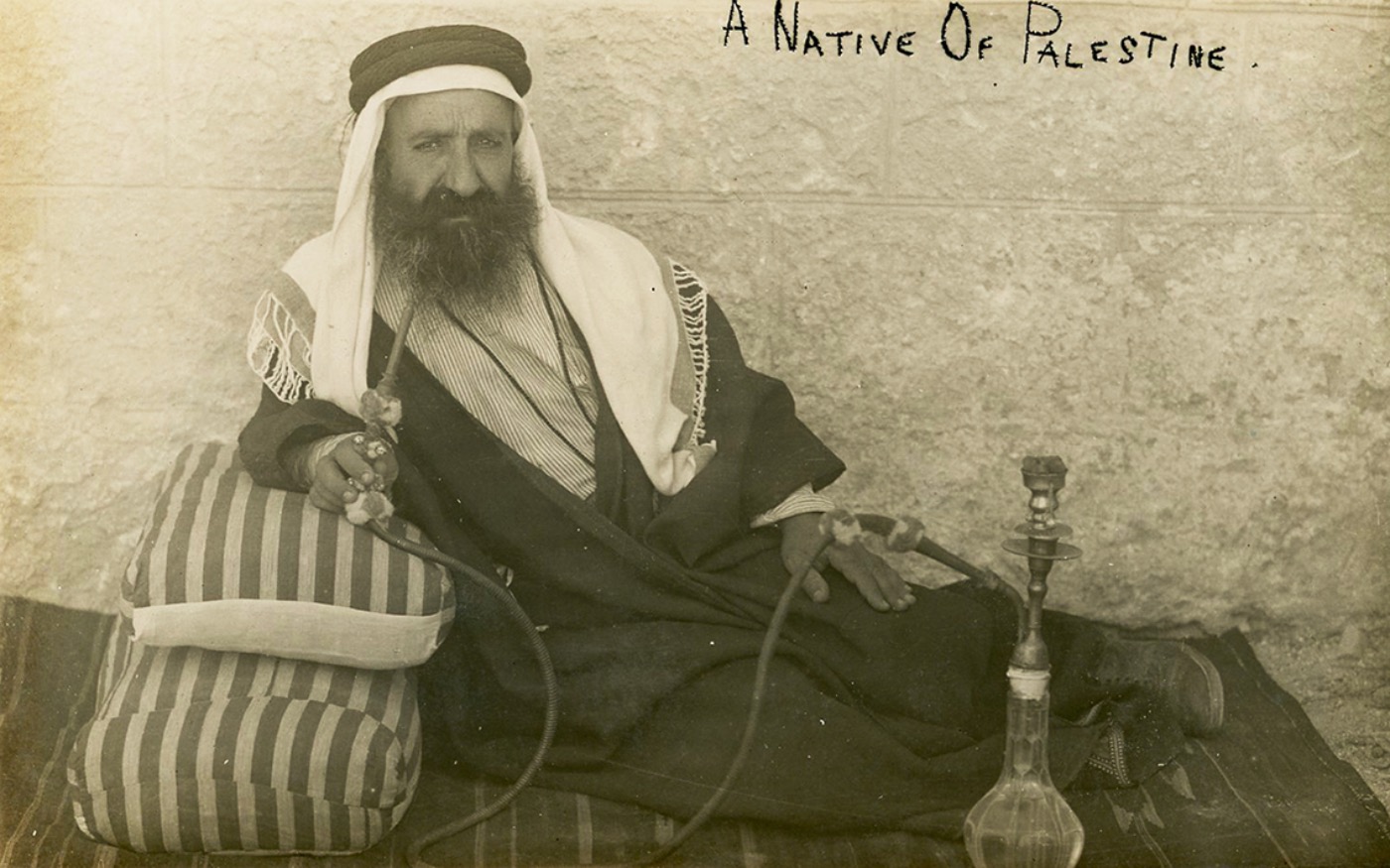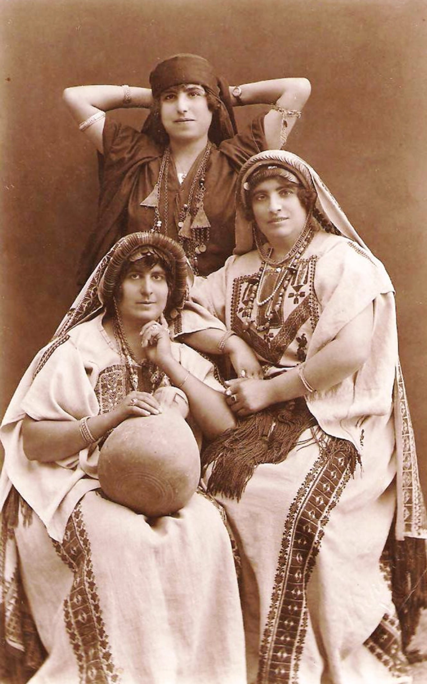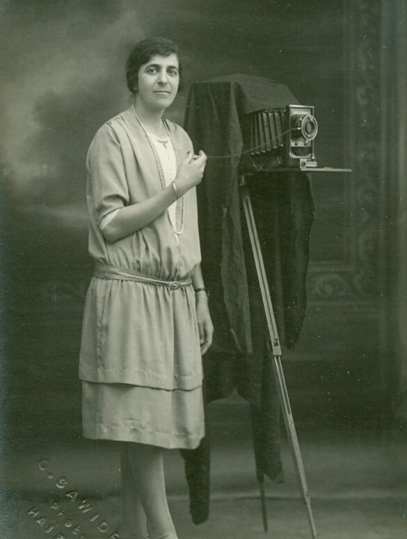 Née en 1893 à Bethléem, Karimeh Abbud reçoit son tout premier appareil photo à ses 17 ans. Elle exerce naturellement son œil dans la sphère intime, photographiant famille et amis avant de progressivement inclure des paysages de Palestine, scènes religieuses et des mises en scène ses autoportraits en tenue traditionnelle, au puit ou sous un olivier, à ses albums.