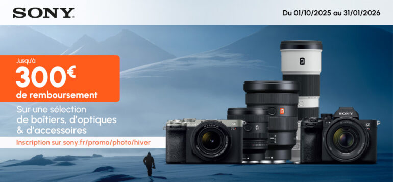 Les offres d’hiver des constructeurs font leur grand retour. Après Nikon, Fujifilm, Panasonic ou OM System, la marque dévoile son offre « Sony Hiver ». Au menu, jusqu’à 300 € de remise immédiate sur une large sélection de boîtiers, d’objectifs et d’accessoires.