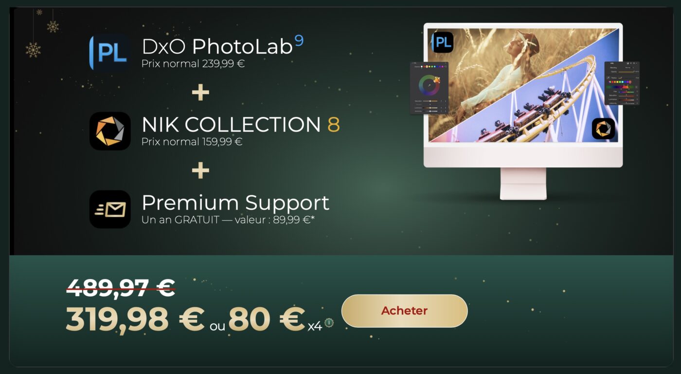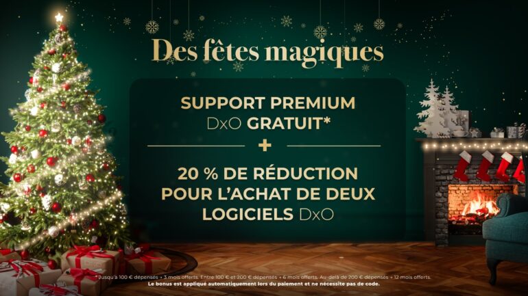 Pour cette fin d’année 2025, DxO gâte les photographes avec une nouvelle offre de fin d’année. Jusqu’au 6 janvier 2026, bénéficiez de 20% de réduction pour l’achat de deux logiciels ou plus, ainsi qu’un accès gratuit au Support Premium DxO pouvant aller jusqu’à un an.