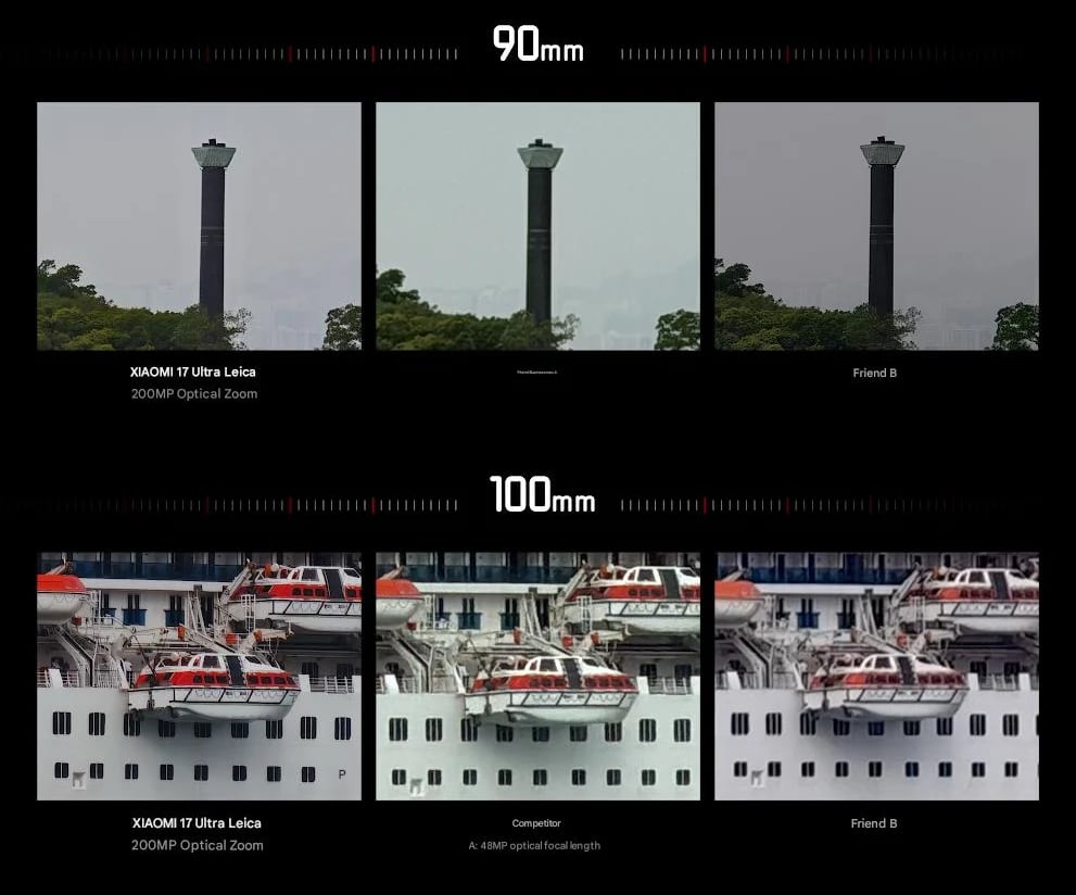 Mais surtout, le Xiaomi 17 Ultra se doterait d’un “vrai” télézoom optique offrant une plage focale équivalent 75-100 mm. Soit une manière de “couvrir” 4 focales fixes (75 mm, 85 mm, 90 mm et 100 mm).