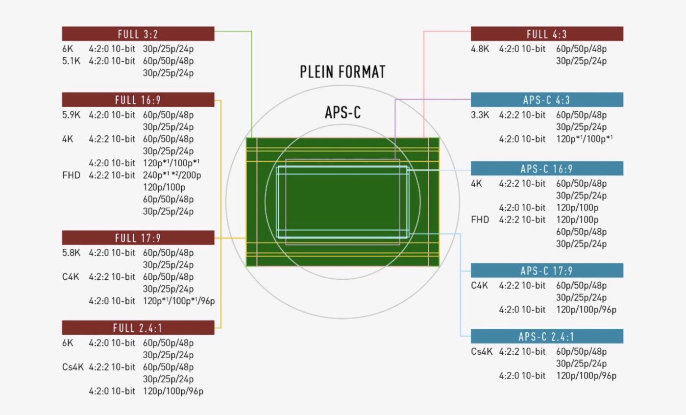 | Définition vidéo max. | 6K 60 fps, 4K 60 fps, 4K 120 fps (crop 1,5x) | 4K UHD 60 fps, 4K UHD 120 fps (crop 1,5x) | 7K 24 fps Open Gate, 7K DCI 60 fps, 4K 120 fps | 6K 30 fps Open Gate, 5,1K 60 fps Open Gate, 5,9K 30 fps, 4K 120 fps |