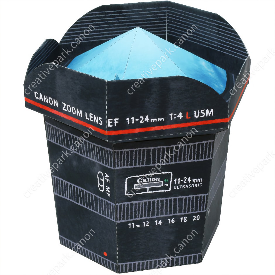 L’objectif UGA rectilinéaire le plus large du marché à sa sortie, l’EF 11-24 mm f/4L USM, devient un petit vide-poche de 75 x 80 x 75 mm.