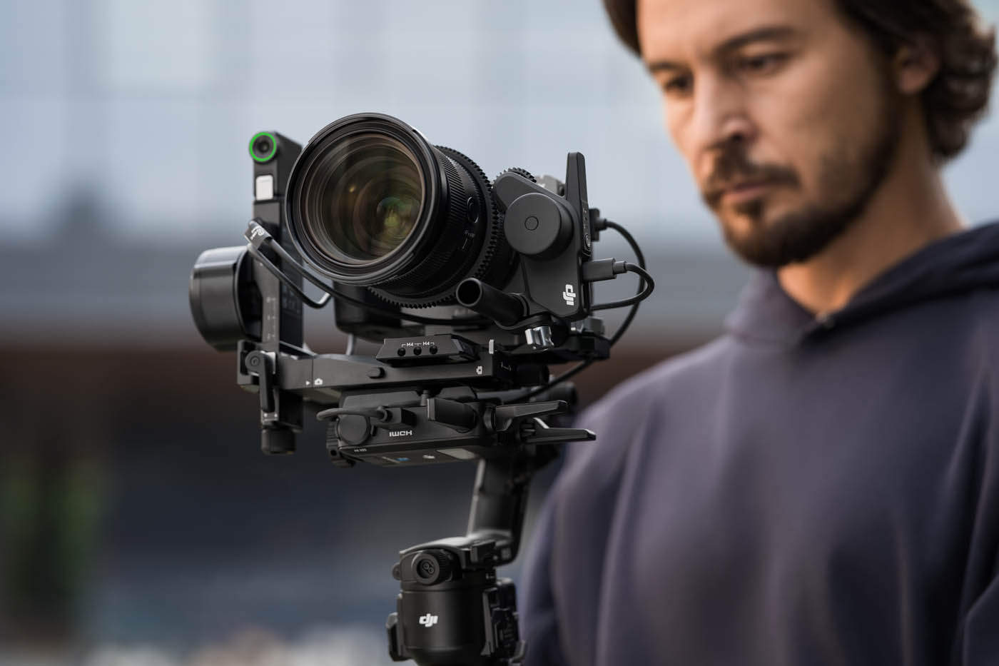 Le RS 5 s’intègre toujours dans l’écosystème DJI Pro : il est compatible avec jusqu’à deux moteurs Focus Pro pour gérer zoom et mise au point simultanément, avec la transmission SDR pour le monitoring à distance, et la plateforme est ouverte aux développeurs tiers via un SDK.