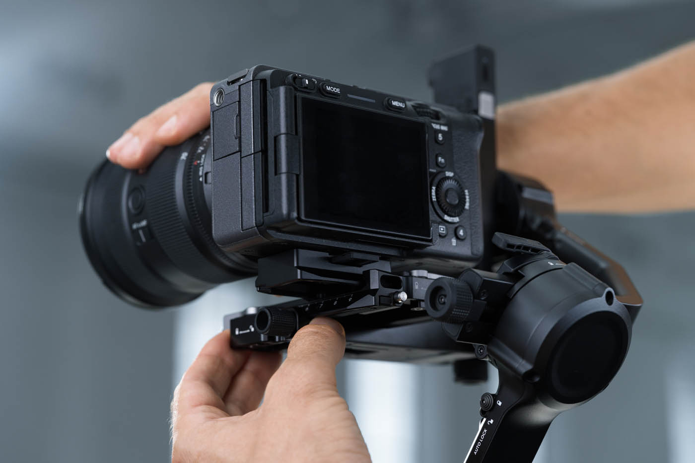 Avec sa charge utile maximale de 3 kg, le RS 5 peut accueillir la grande majorité des configurations hybrides du marché. Pour donner un ordre d’idée, un Nikon Z6 III (760 g) équipé d’un Nikkor Z 24-70 mm f/2.8 S (805 g) représente environ 1,5 kg : on reste largement dans les clous, avec de la marge pour ajouter un micro ou un accessoire.