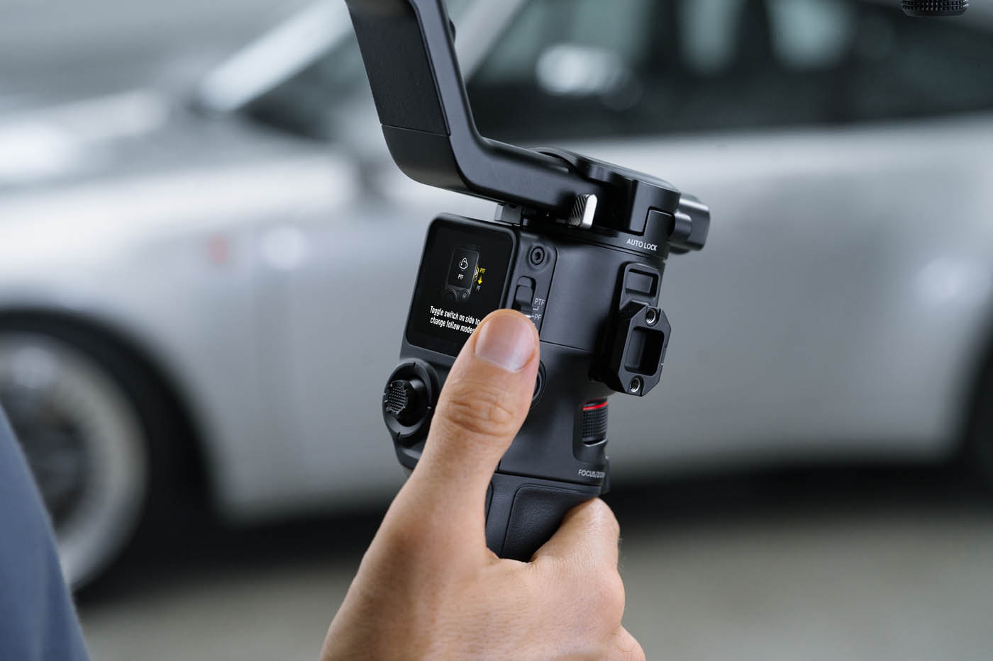 Le DJI RS 5 permet de basculer rapidement entre trois modes principaux grâce à un commutateur placé sur la droite de la poignée :