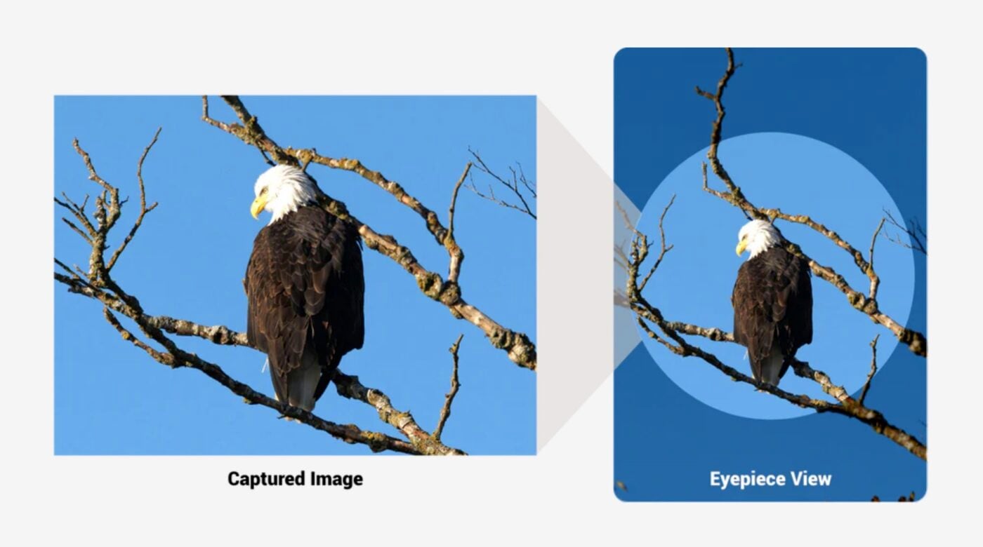 Côté prise de vue, un capteur CMOS de type 1/2,7” de 8 Mpx permet de réaliser des photos en 2880 x 2160 pixels et des vidéos Full HD à 24 fps. Un système breveté TrueFrame aligne l’axe optique et le capteur : l’image vue à travers les oculaires correspond exactement à celle capturée, contrairement aux anciennes jumelles-caméras souvent sujettes à des décalages.