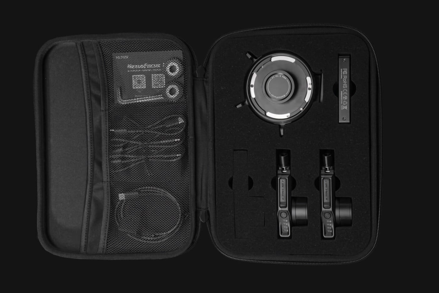 Ainsi, le NexusFocus F1 se compose d’un adaptateur E vers monture PL. Cette bague est reliée en USB-C à 1, 2 ou 3 moteurs crantés. Ces derniers peuvent se placent au niveau des bagues de mise au point, de zoom ou de contrôle du diaphragme. Tout ces accessoires sont ensuite alimentés par une batterie externe.