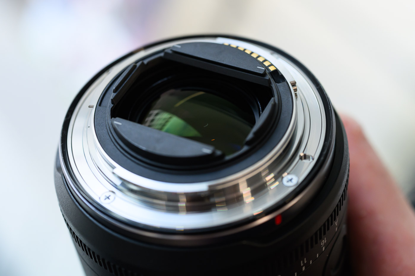 Avec cette lentille frontale bombée, l’objectif n’est pas compatible avec les filtres circulaires classiques, mais utilise un système de porte-filtre arrière. On peut ainsi placer ses gélatines au plus près du capteur. Un dispositif déjà croisé sur le RF 20 mm f/1,4 L VCM, soit dit en passant.