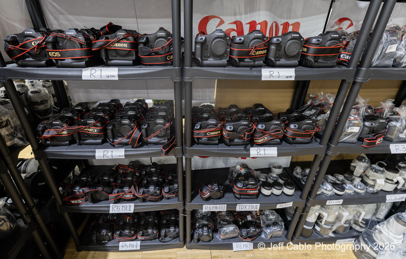 Du côté des appareils, Canon n’a pas ménagé ses efforts. Plus de 40 Canon EOS R1 sont disponibles. Les EOS R3, EOS R5 Mark II, EOS R6 Mark II et EOS R6 Mark III sont également en stock, ainsi que, fait plus surprenant, quelques anciens reflex EOS 1DX Mark III.