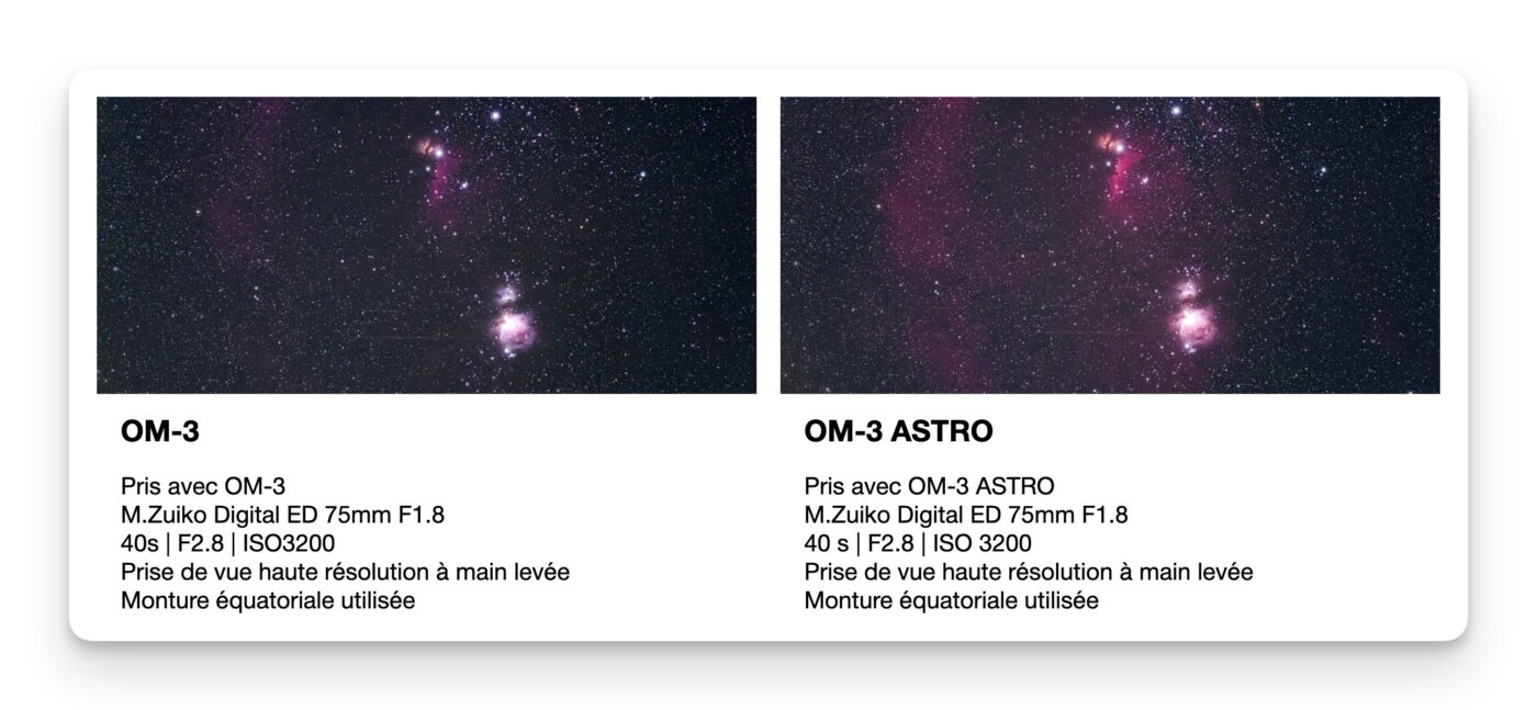 Mais il faudra juger sur le terrain : la qualité du résultat face à un empilement logiciel traditionnel (via DeepSkyStacker ou Siril, par exemple) sera déterminante pour savoir si l’OM-3 Astro apporte une vraie plus-value au workflow des astrophotographes.
