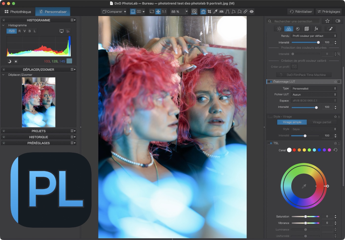 Depuis, DxO a considérablement enrichi sa proposition. Disponible en version 9, la solution est aujourd’hui d’une grande maturité. Elle s’articule autour de cinq piliers majeurs : un module Photothèque pour l’organisation des fichiers, un moteur de dématriçage et de débruitage basé sur le deep learning (DeepPrime), des corrections optiques calibrées en laboratoire sur des milliers de couples boîtier/objectif, des outils de retouche globale complets (courbes, TSL, LUT, Smart Lighting, ClearView Plus) et, grande nouveauté de cette version 9, des masques de retouche localisée assistés par IA.