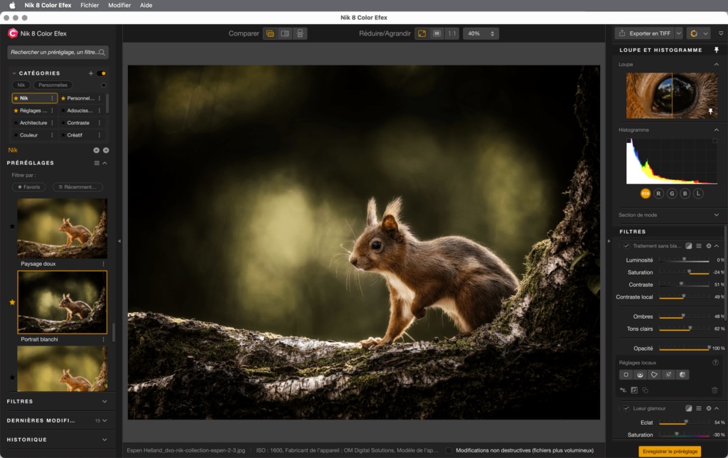 Toutefois, l’esthétique globale commence à accuser son âge. Certains éléments graphiques, comme les boutons et les commutateurs, manquent de modernité face à des solutions concurrentes, ou même face à la propre Nik Collection de l’éditeur, visuellement plus actuelle. Sur un écran très défini (2,7K et plus), les éléments de l’interface sont de très petite taille et l’affichage est souvent très dense. Dommage.